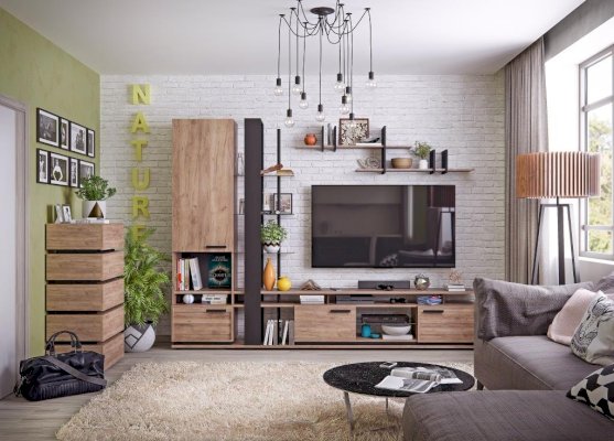 Для маленькой гостиной отлично подойдет высокий и узкий комод Nature 6. Гладкие фасады ящиков в теплом декоре с контрастными черными боковыми планками снизу делают его по-настоящему особенным. Пять выдвижных ящиков глубиной 14 см способны вместить все необходимое, а компактная конструкция сэкономит место в комнате. Ящики легко открываются за свес. Регулируемые опоры компенсируют незначительные неровности пола. Внимание, комод необходимо крепить к стене!