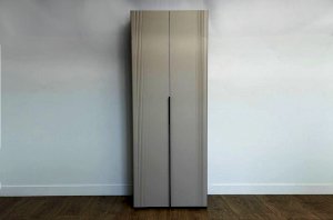 Корпус шкафа изготовлен из ЛДСП, что гарантирует прочность и долговечность. Фасады, выполненные из МДФ в плёнке ПВХ, не только выглядят эстетично, но и защищают шкаф от повреждений. Особое внимание заслуживает фрезеровка фасадов, которая придаёт шкафу изысканный вид.