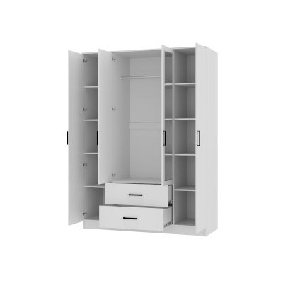 Четырехстворчатый шкаф «Фьюжн» – это настоящая находка для семьи, а также для обладателей большой коллекции одежды. Два крайних отсека идеально подойдут для хранения повседневной одежды, а центральная секция со штангой позволит аккуратно хранить верхнюю одежду, костюмы и рубашки. Два вместительных ящика предназначены для постельного и нижнего белья, также здесь можно хранить обувь. Особый шарм данной модели придают зеркальные вставки на дверцах. Кроме того, зеркала визуально расширяют пространство. Эргономичные ручки удобны для повседневного использования.