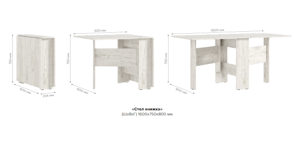 Длина разложенного столика, мм 1600