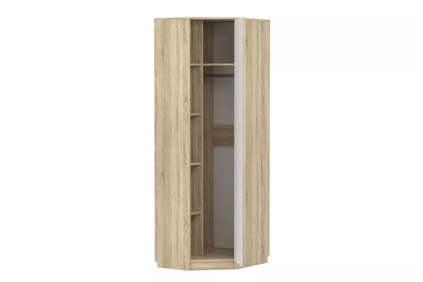 Шкаф «Фанк» предназначен для тех, кто любит выдержанный стиль. Идеально для организации подростковой комнаты. А универсальный дизайн и цветовое решение подойдет как для мальчика, так и для девочки. С угловым шкафом «Фанк» получится максимально использовать пространство в комнате, задействовав место в углу. Внутри модуль разделен на две функциональные зоны. Секция с пятью полками подходит для хранения одежды в сложенном виде, а на штанге в другой половине шкафа можно разместить одежду на вешалках-плечиках. Широкая полка, расположенная над штангой, удобна для хранения коробок.