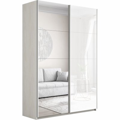 Шкаф-купе 2-х дверный Прайм Зеркало/Белое стекло (Е1)