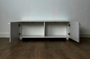 Тумба оснащена двумя распашными дверцами, за которыми располагается вместительное внутреннее пространство для хранения книг, игрушек, текстиля и других необходимых вещей. Такое решение позволяет скрыть содержимое и сохранить аккуратный внешний вид комнаты.