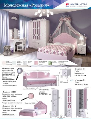 Мебель коллекции «Розалия» выполнена в романтичных тонах. Она подойдет как маленькой девочке, так и девочке-подростку. Классический дизайн комнаты создает сдержанный и изысканный интерьер. В детской Детская комнате особое место занимает зона отдыха. Здесь используются встроенные светильники. Именно поэтому возле кровати необходимо предусмотреть наличие розетки. Мебель сделана из экологически чистых материалов и соответствует всем стандартам безопасности. С помощью модульной детской «Розалия» легко создать уютное пространство для игр, учебы, творчества и отдыха ребенка.